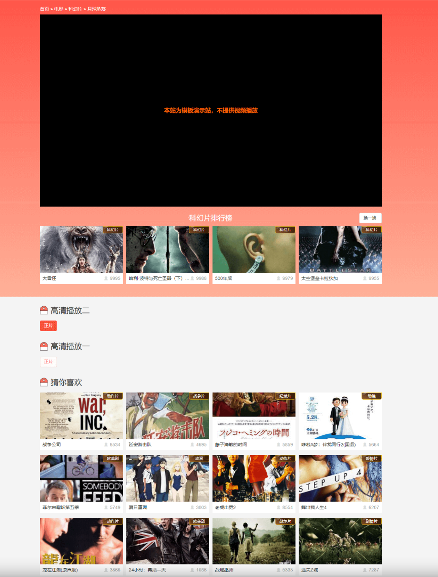 2、本商品仅为苹果CMS V10版本的模板,不包含程序及任何视频数据,适用于非二次开发的苹果CMS。